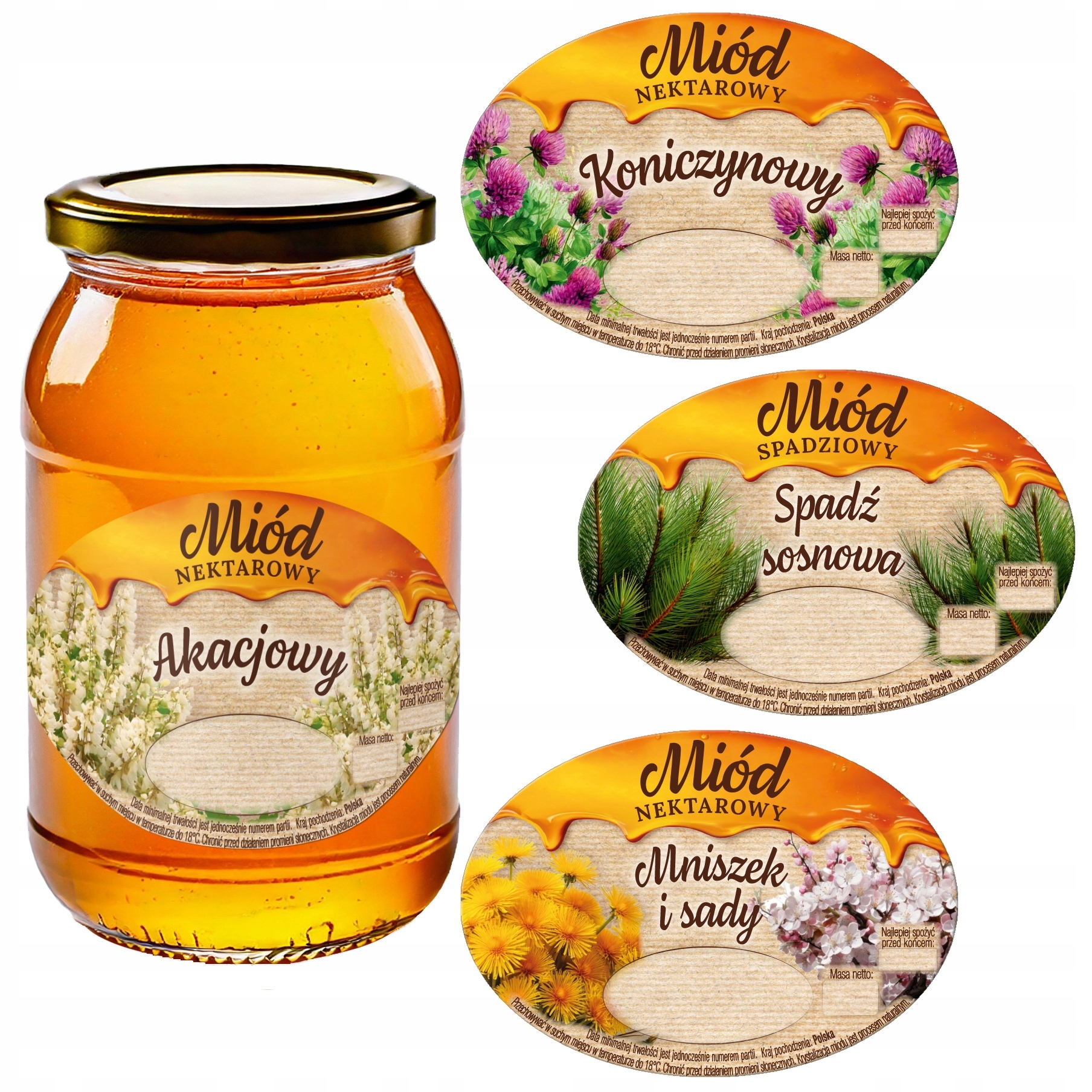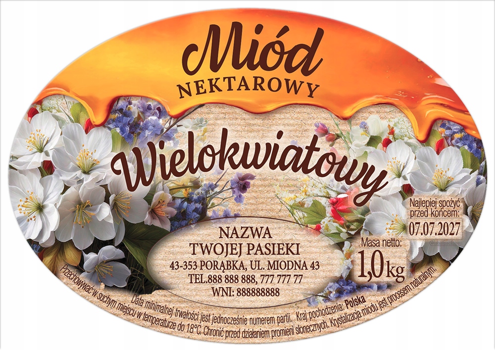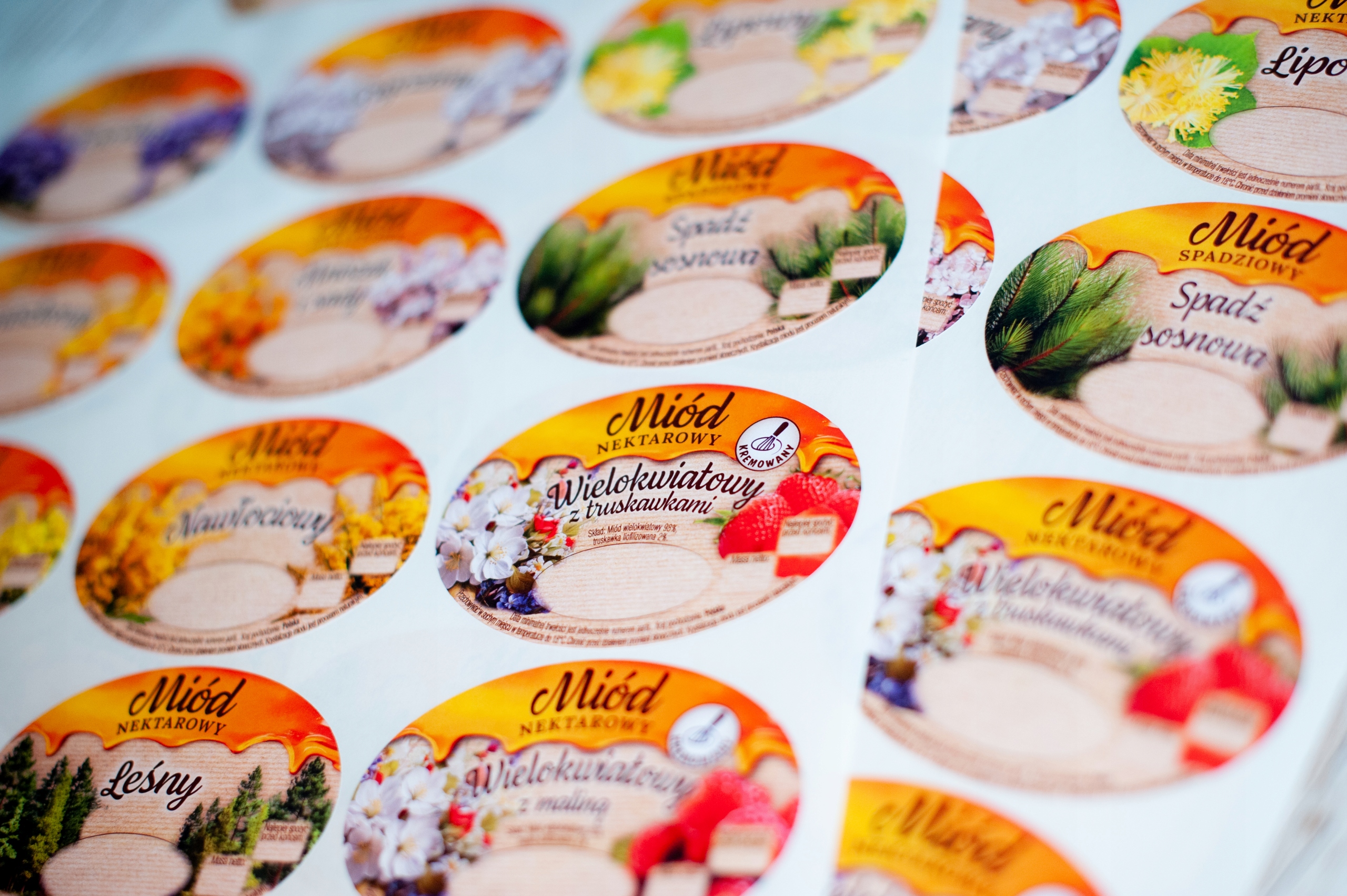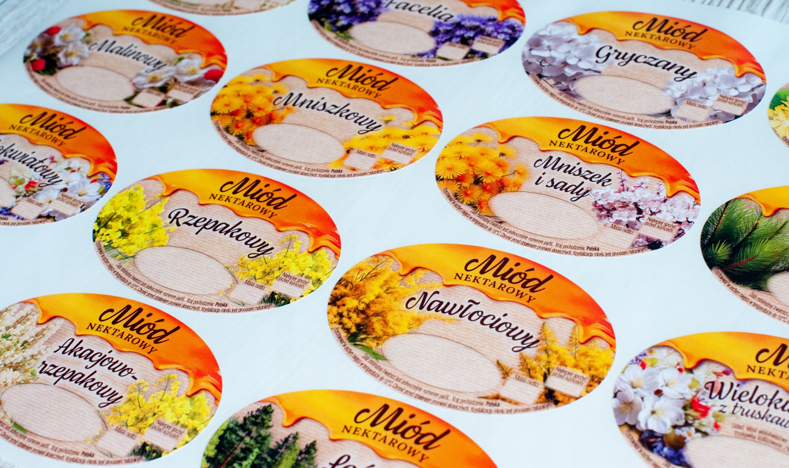 Obecnie posiadamy w produkcji etykiety polskie na miód: