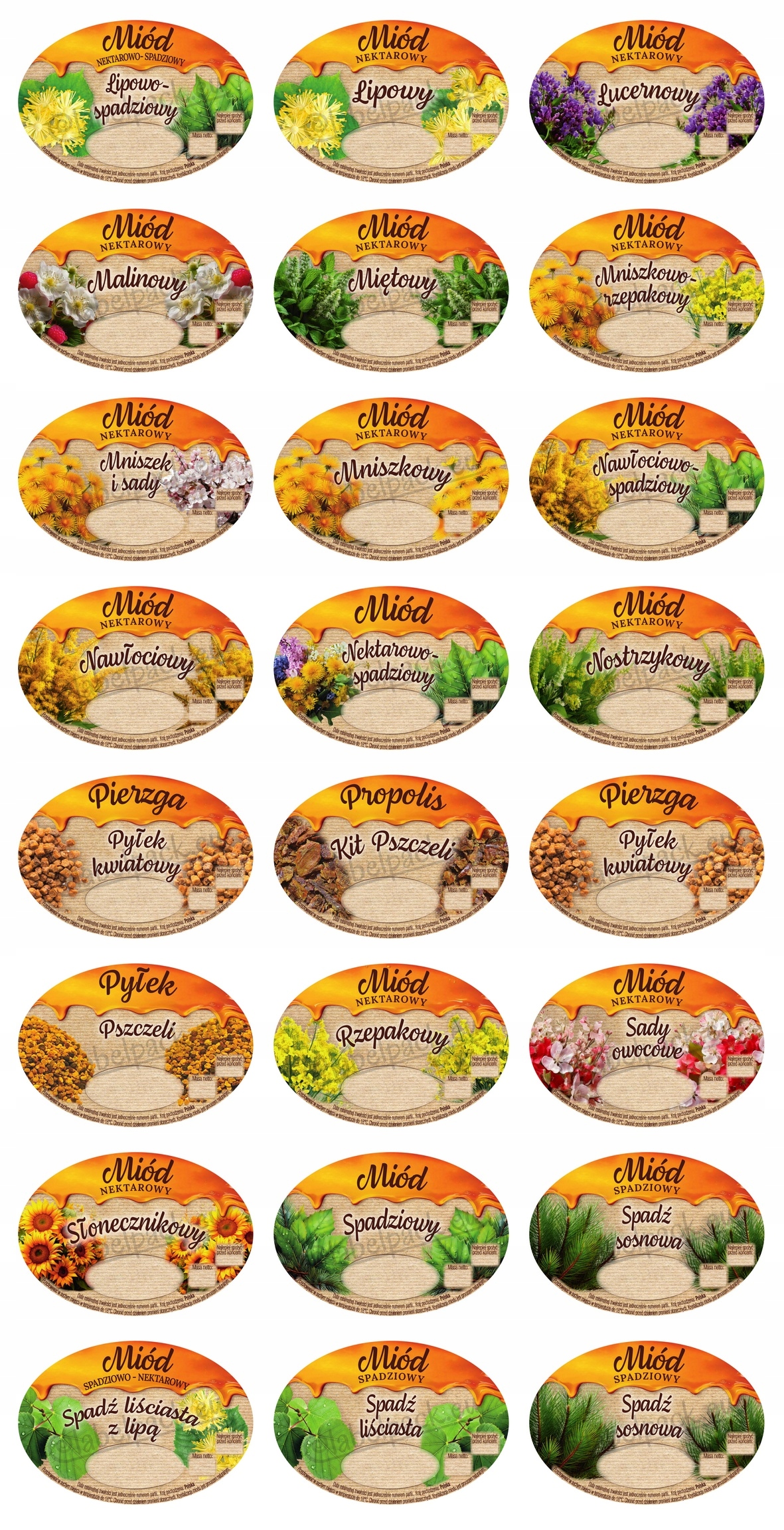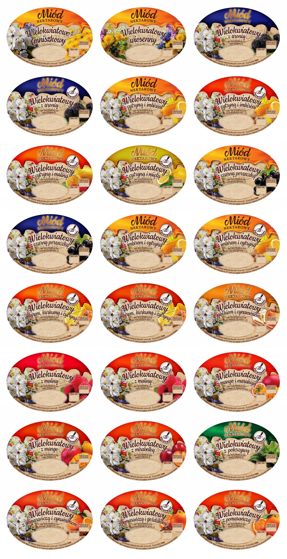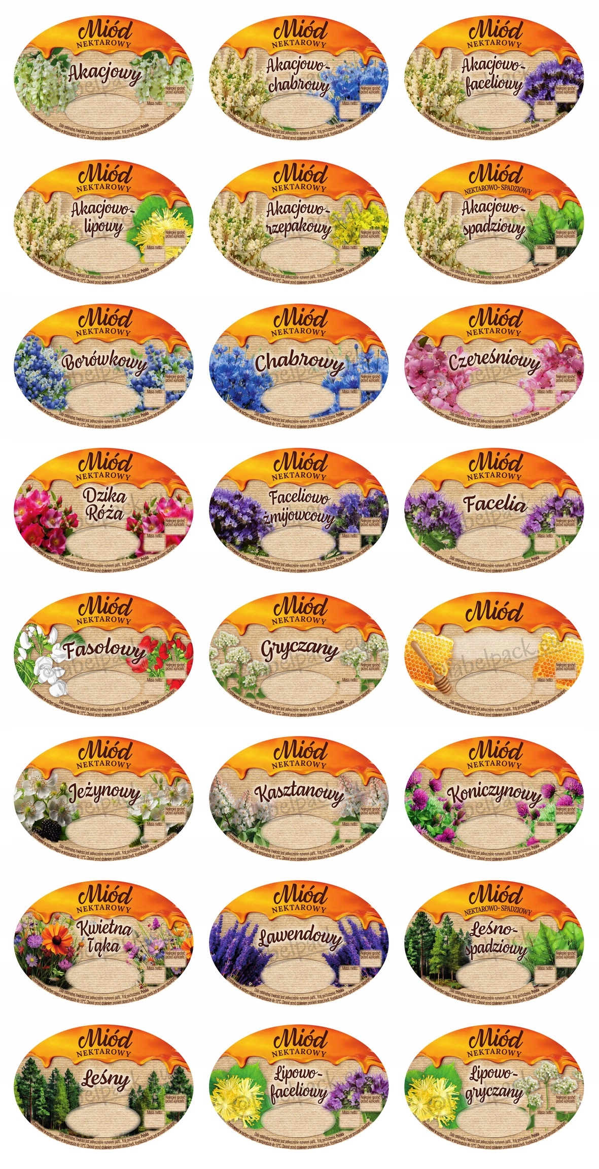 Obecnie posiadamy w produkcji etykiety polskie na miód: